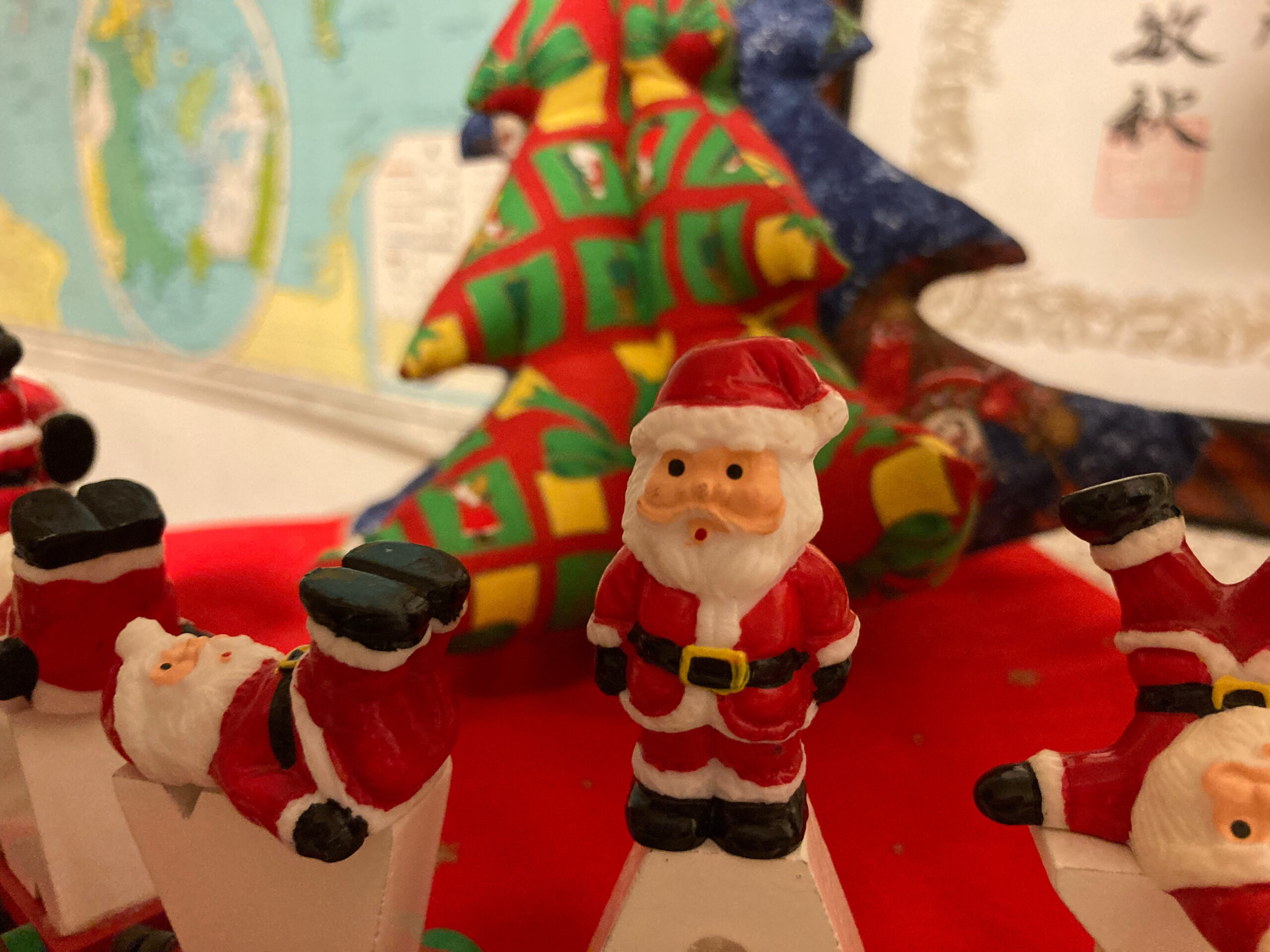 ふと目に入ったこのサンタたちを見て、思わず微笑んでしまいました。